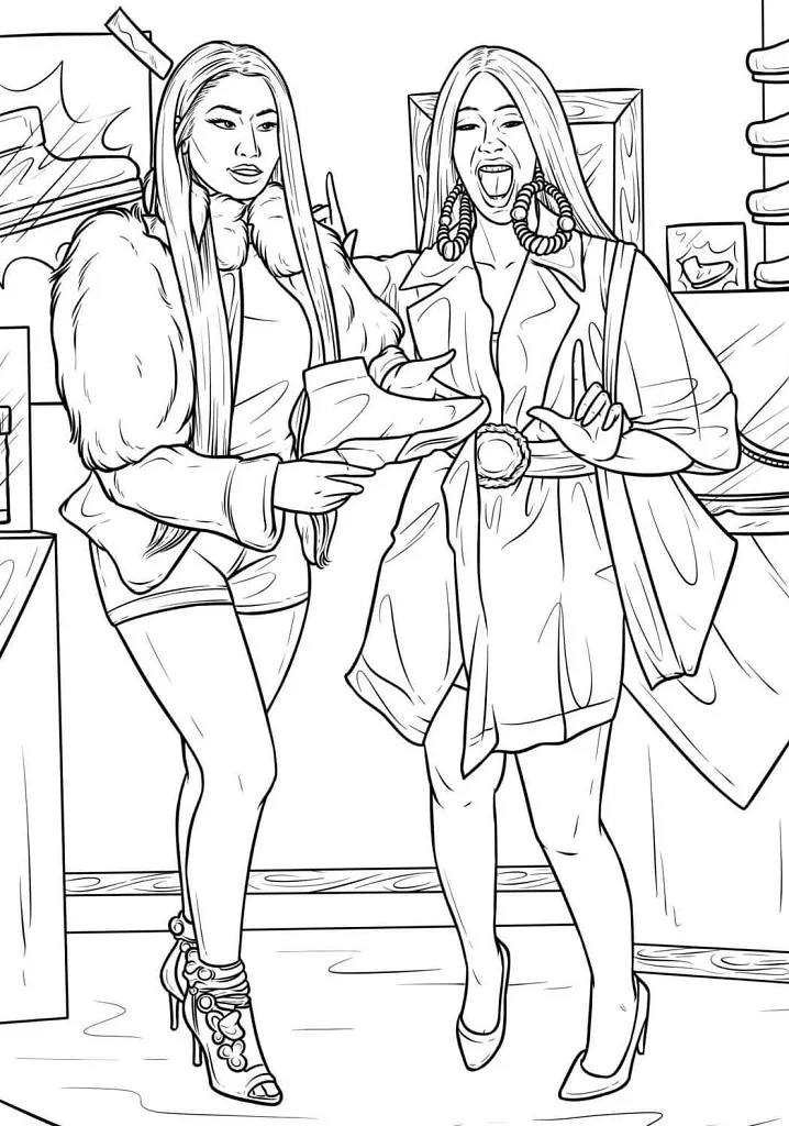 : Druckbar herunterladen Cardi B and Nicki Minaj Malvorlage