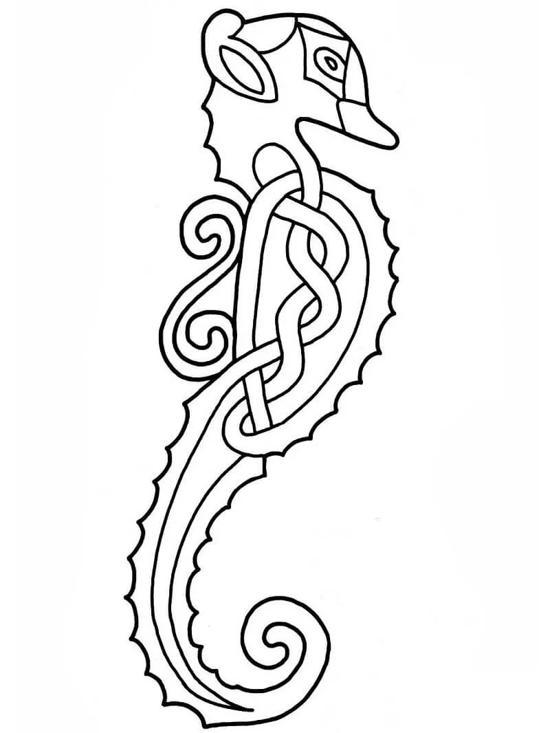 : Druckbar herunterladen Celtic Seahorse Design Malvorlage