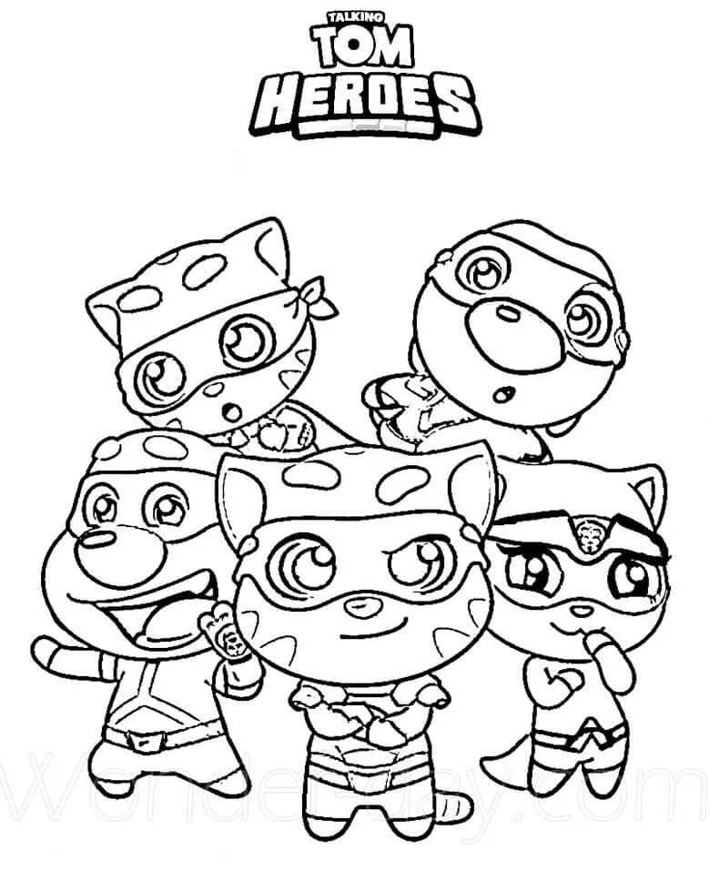 : Druckbar herunterladen Characters from Talking Tom Heroes Malvorlage
