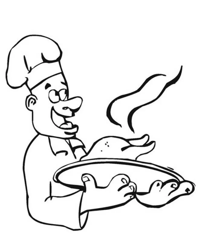 : Druckbar herunterladen Chef cooking chicken Malvorlage