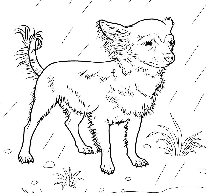 : Druckbar herunterladen Chihuahua in Rain Malvorlage