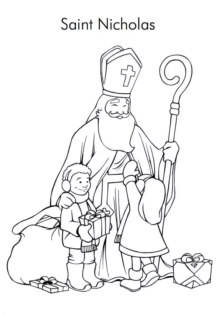: Druckbar herunterladen Children and Saint Nicholas Malvorlage