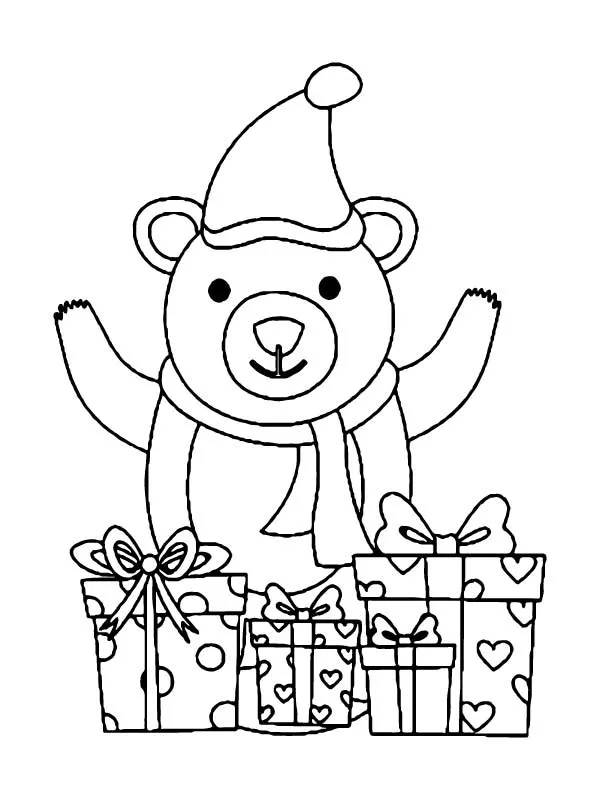 : Druckbar herunterladen Christmas Bear Malvorlage