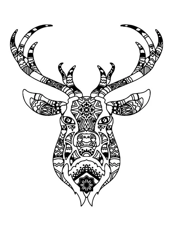 : Druckbar herunterladen Complex Reindeer Portrait Malvorlage