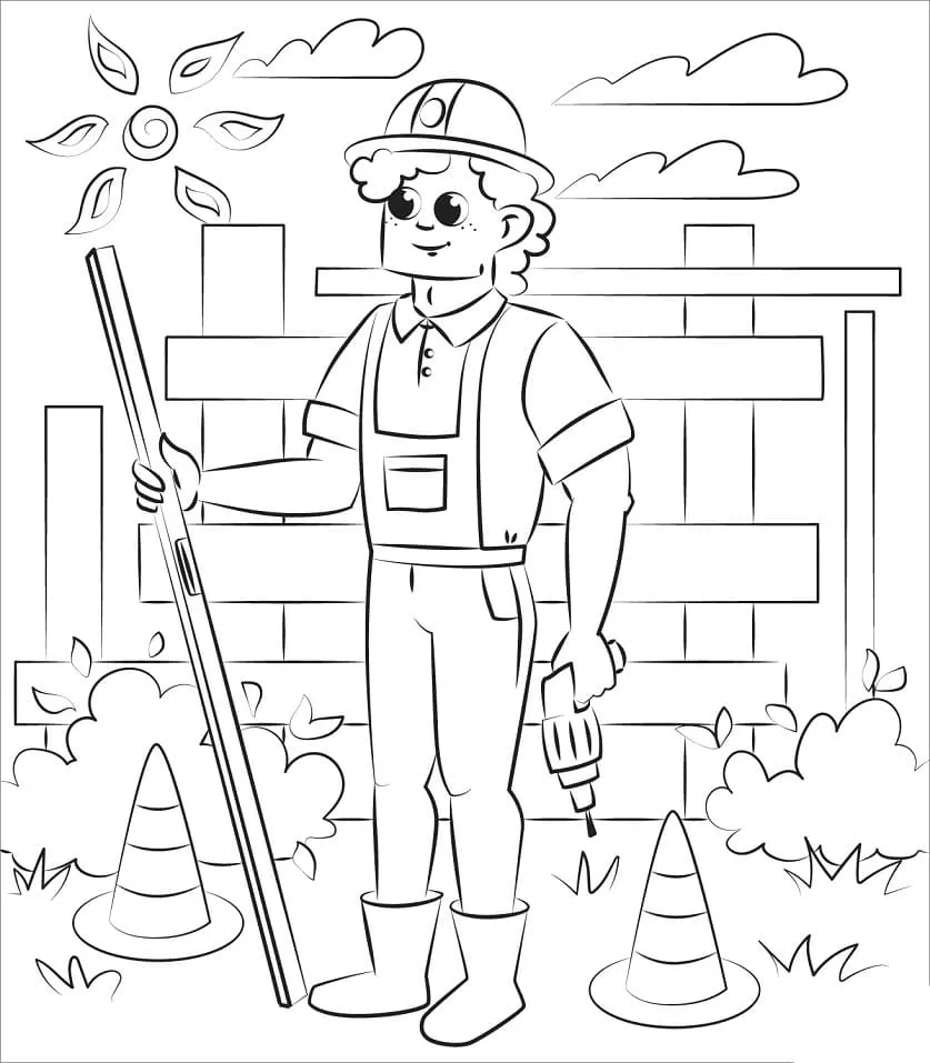 : Druckbar herunterladen Cool Construction Worker Malvorlage