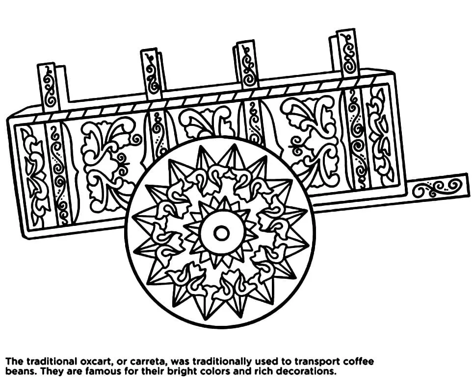 : Druckbar herunterladen Costa Rica Oxcart Malvorlage
