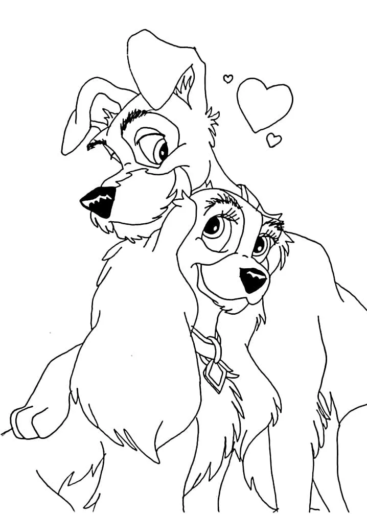 : Druckbar herunterladen Couple Lady and the Tramp Malvorlage