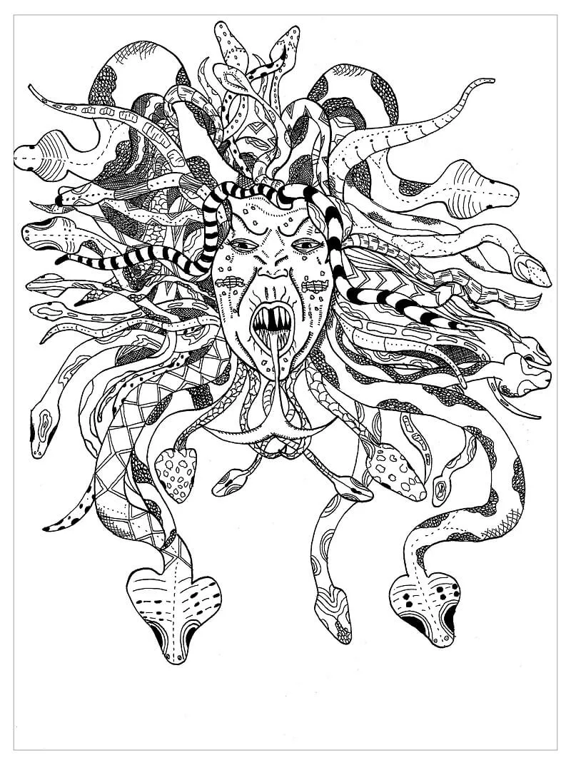 : Druckbar herunterladen Creepy Medusa Malvorlage