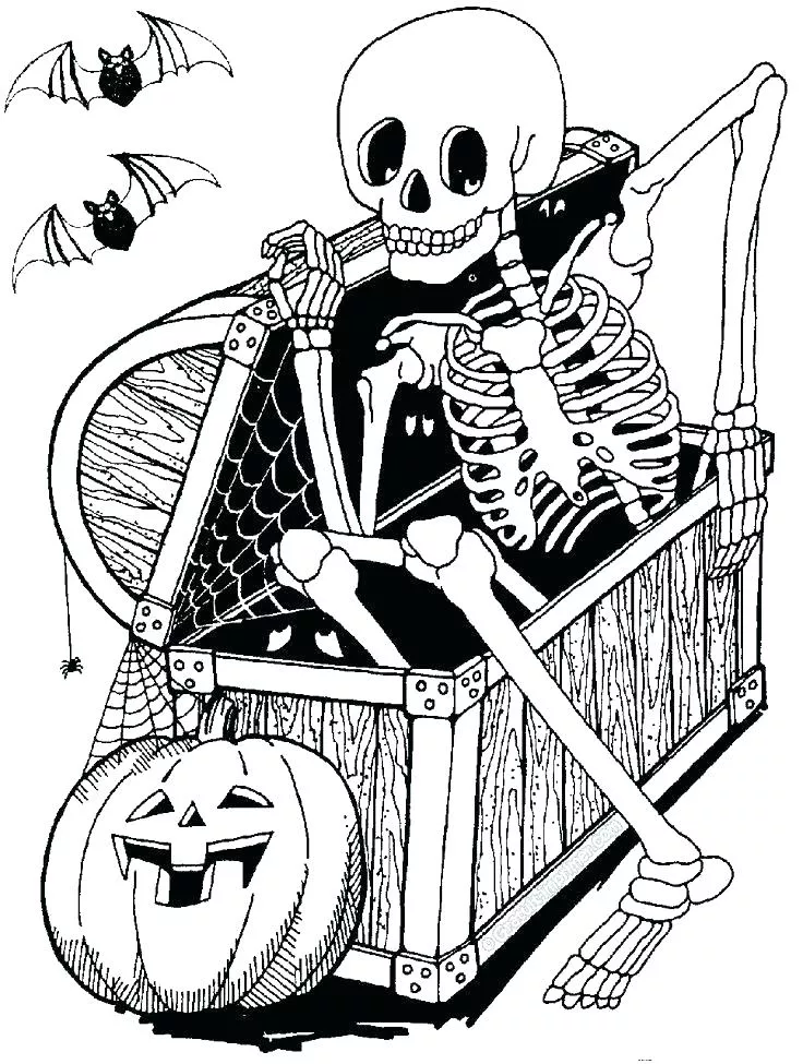 : Druckbar herunterladen Creepy Skeleton In The Chest Malvorlage