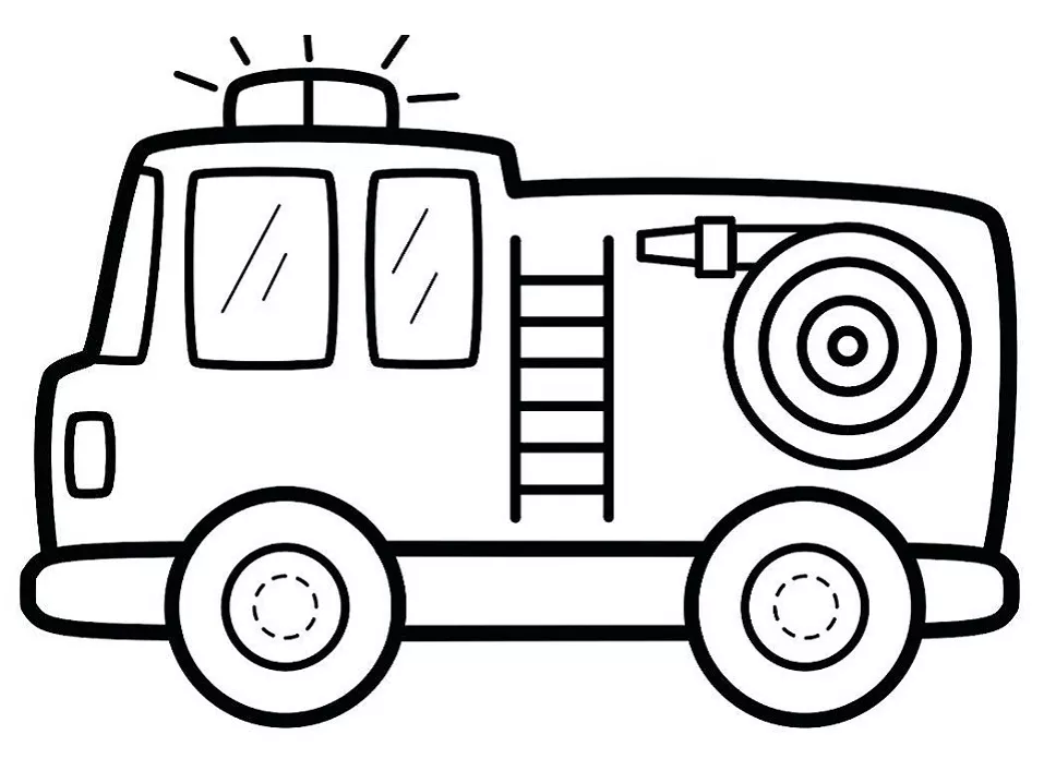 : Druckbar herunterladen Cute Fire Truck Malvorlage
