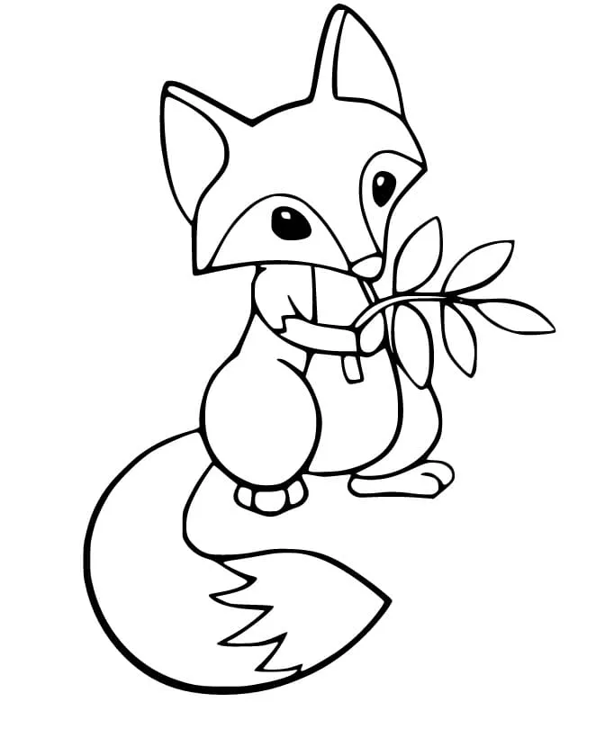 : Druckbar herunterladen Cute Fox and Leaves Malvorlage
