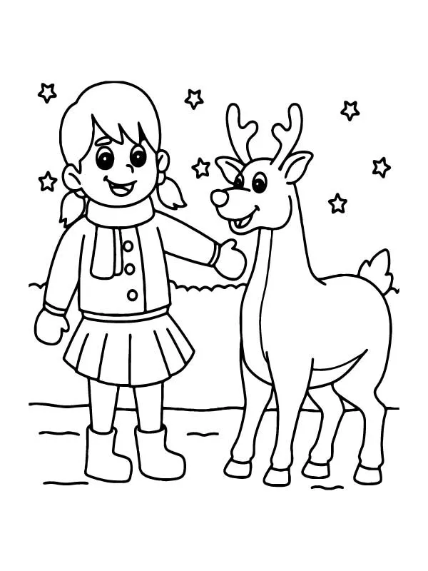 : Druckbar herunterladen Cute Girl and Reindeer Malvorlage