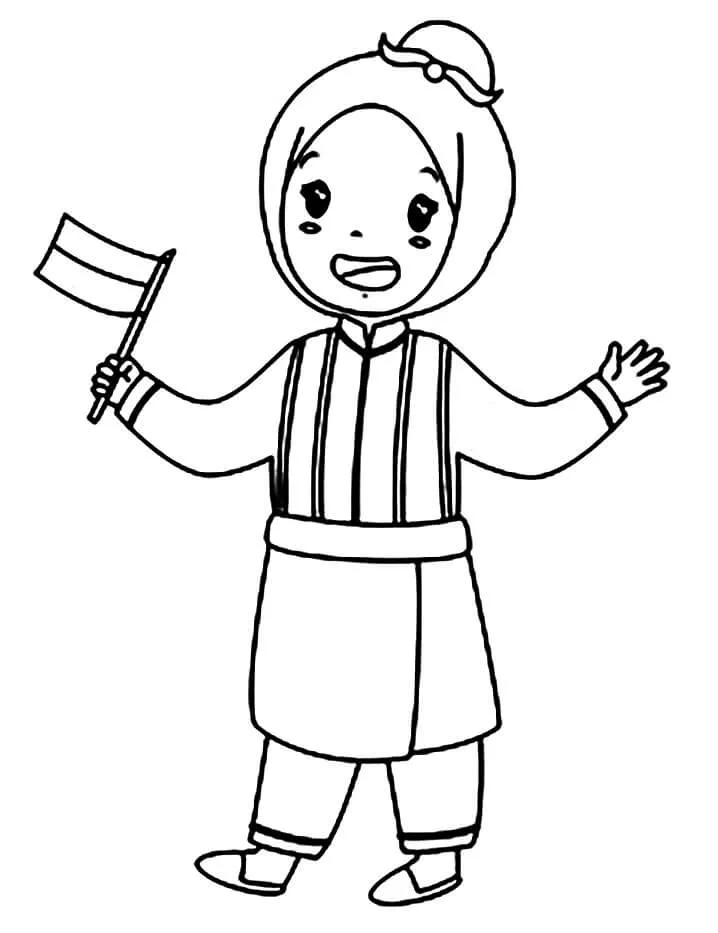 : Druckbar herunterladen Cute Indonesian Girl Malvorlage