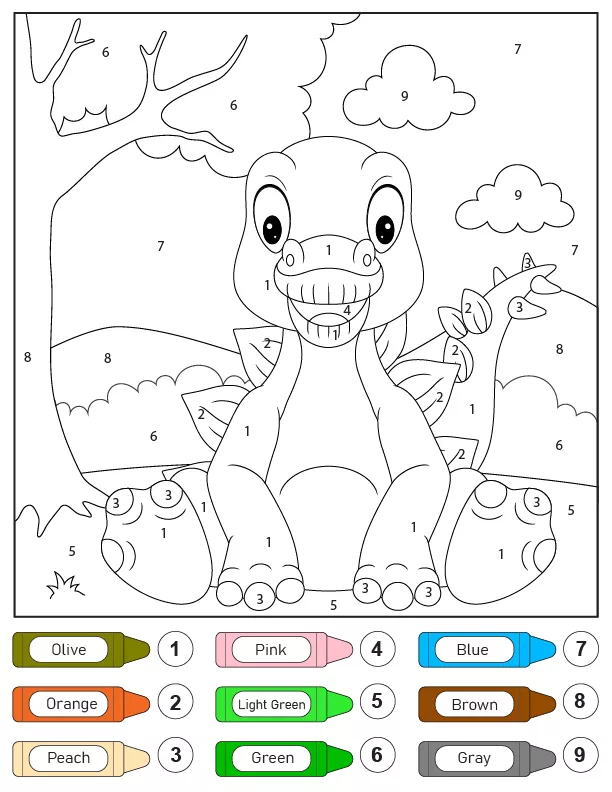 Cute Little Dino Color by Number
