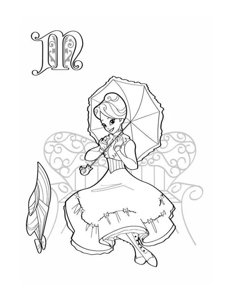 : Druckbar herunterladen Cute Mary Poppins Malvorlage