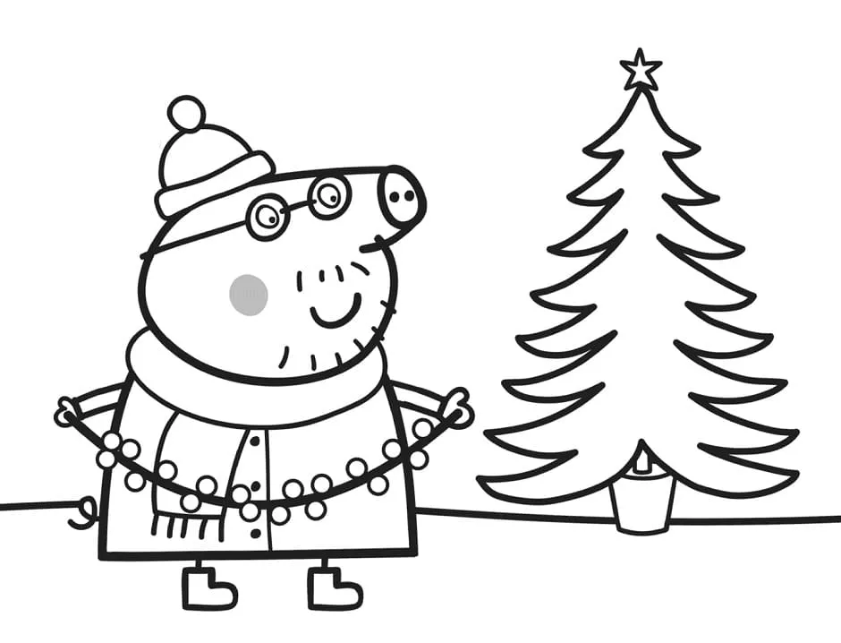 : Druckbar herunterladen Daddy Pig with Xmas Tree Malvorlage