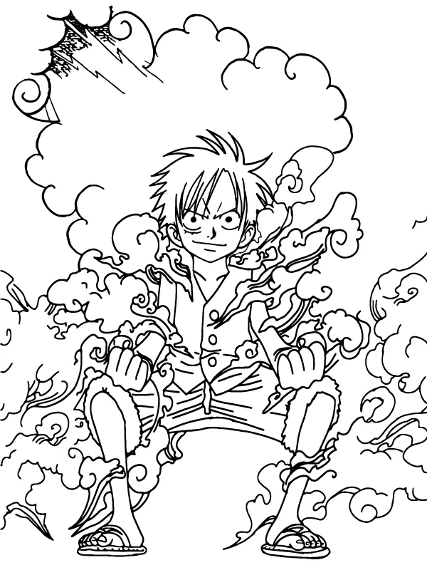 : Druckbar herunterladen Defender Luffy Gear 5 coloring page Malvorlage