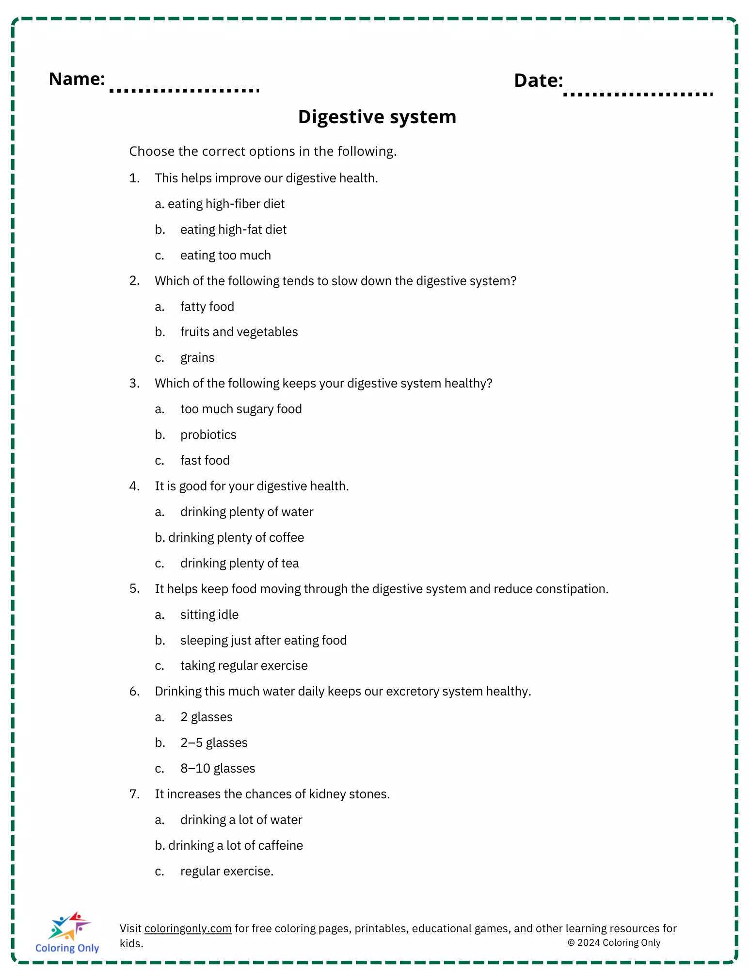 Beschreibung der Färbung : Druckbar herunterladen Digestive system free Printable Worksheet Malvorlage