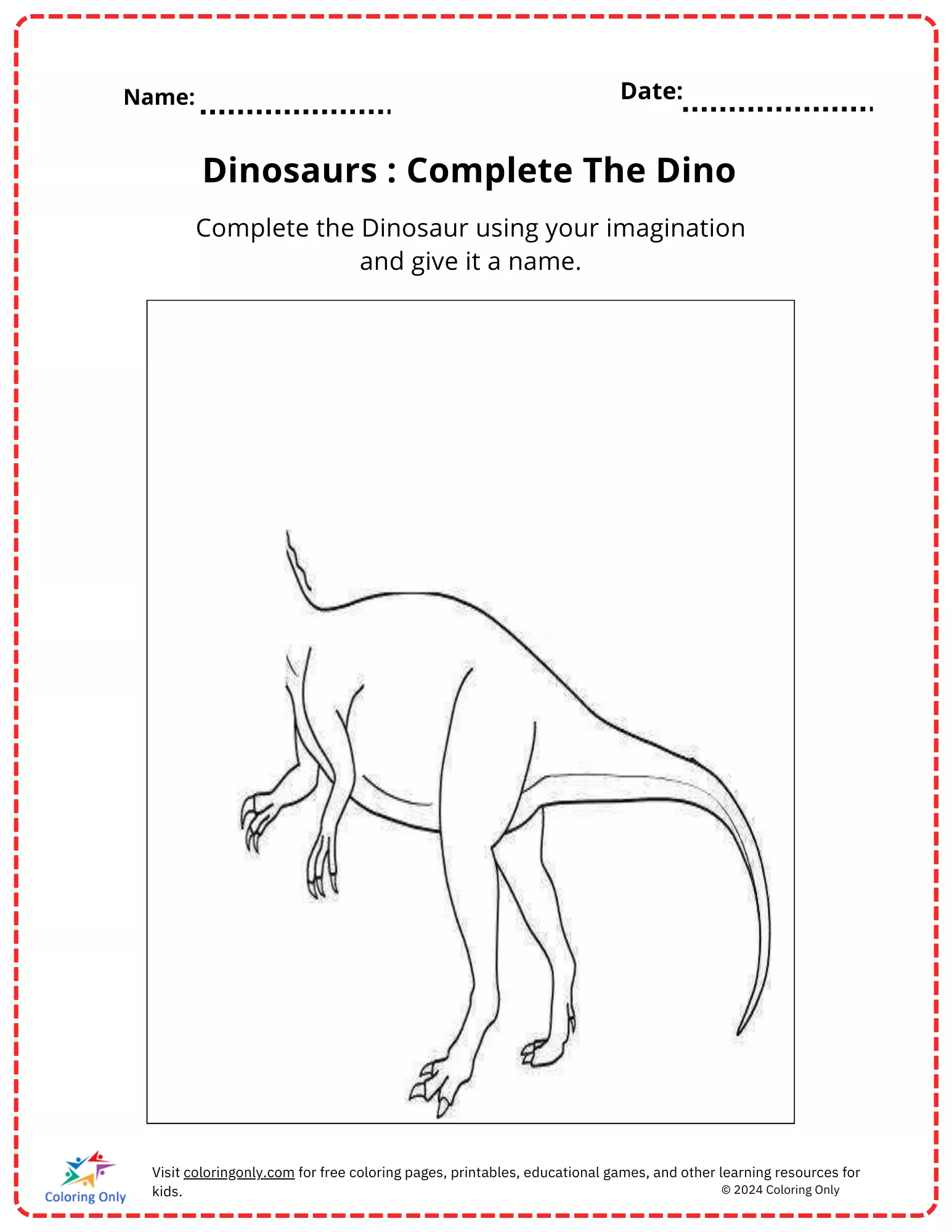 Beschreibung der Färbung : Druckbar herunterladen Dinosaurier : Vervollständigen Sie das kostenlose druckbare Arbeitsblatt von The Dino Malvorlage