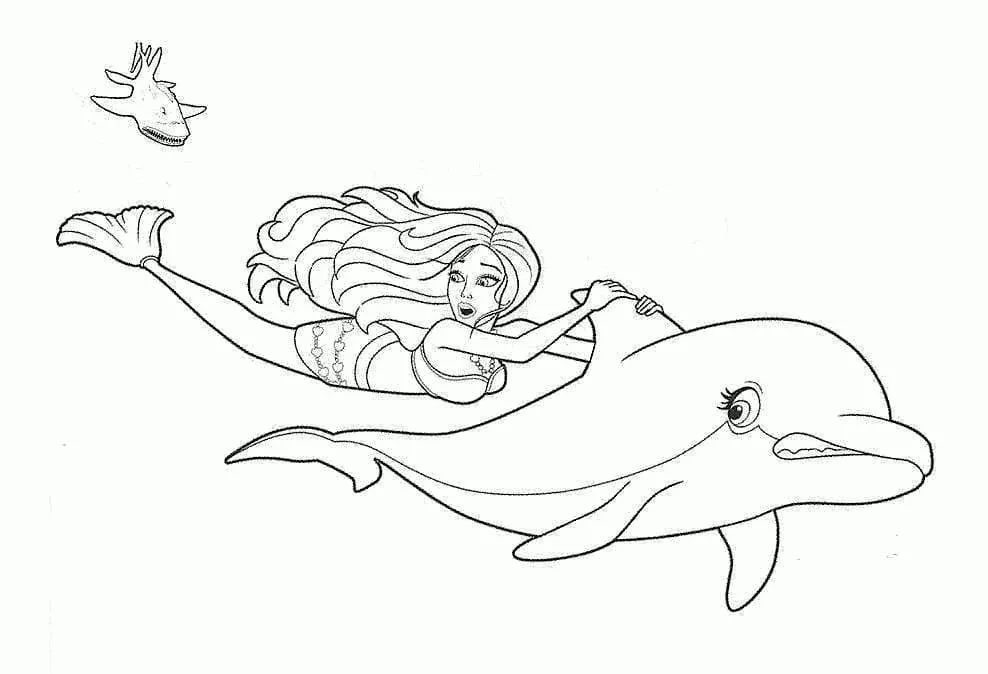 : Druckbar herunterladen Dolphin Saves Barbie Mermaid Malvorlage