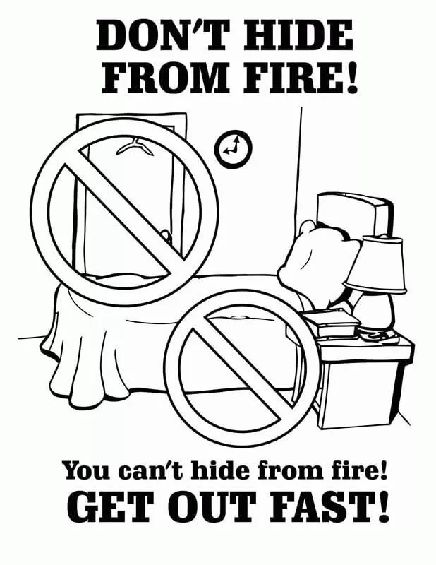: Druckbar herunterladen Dont Hide from Fire Fire Safety 1 Malvorlage