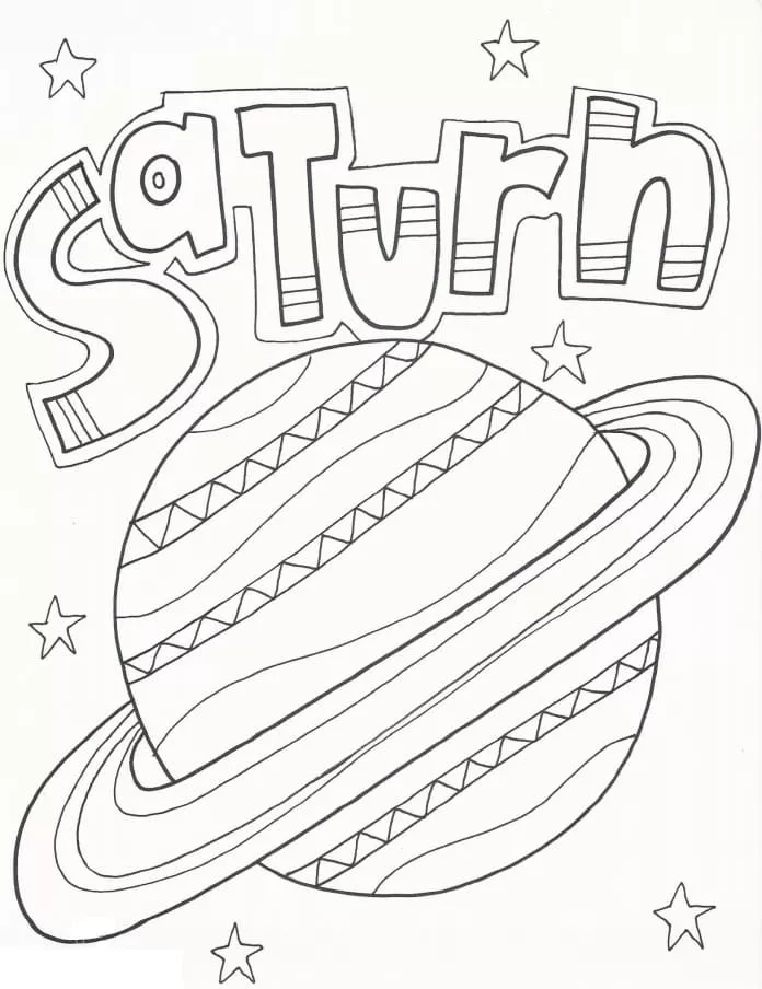 : Druckbar herunterladen Doodle Saturn Malvorlage