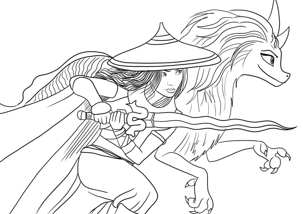 : Druckbar herunterladen Dragon Sisu and Raya Malvorlage