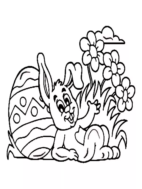 : Druckbar herunterladen Easter Bunny, Egg, and Flowers Malvorlage