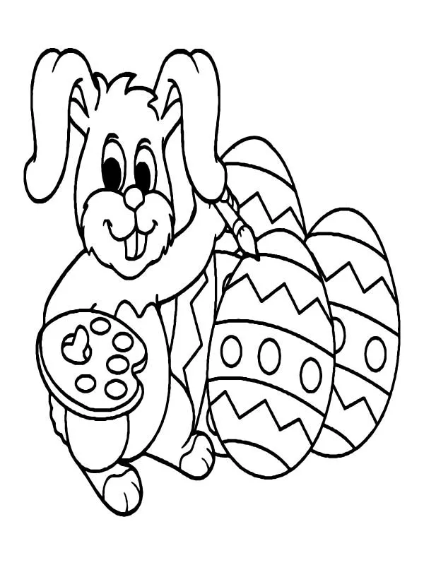 : Druckbar herunterladen Easter Bunny Painting Eggs Malvorlage