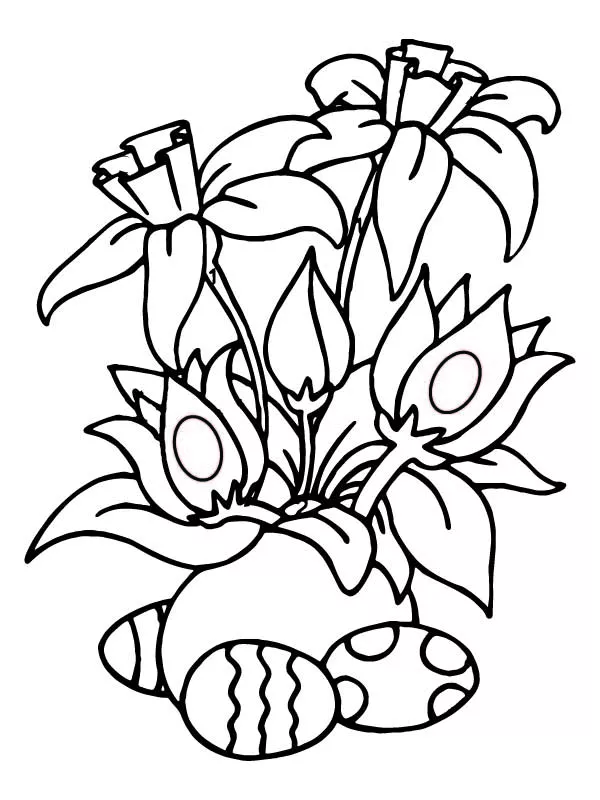 : Druckbar herunterladen Easter Eggs and Blooming Flowers Malvorlage
