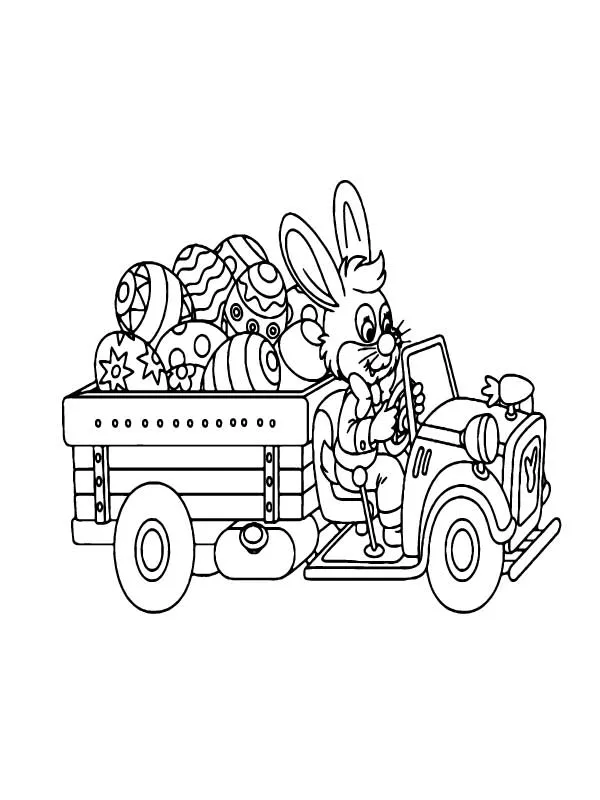 : Druckbar herunterladen Easter Eggs in Truck Malvorlage