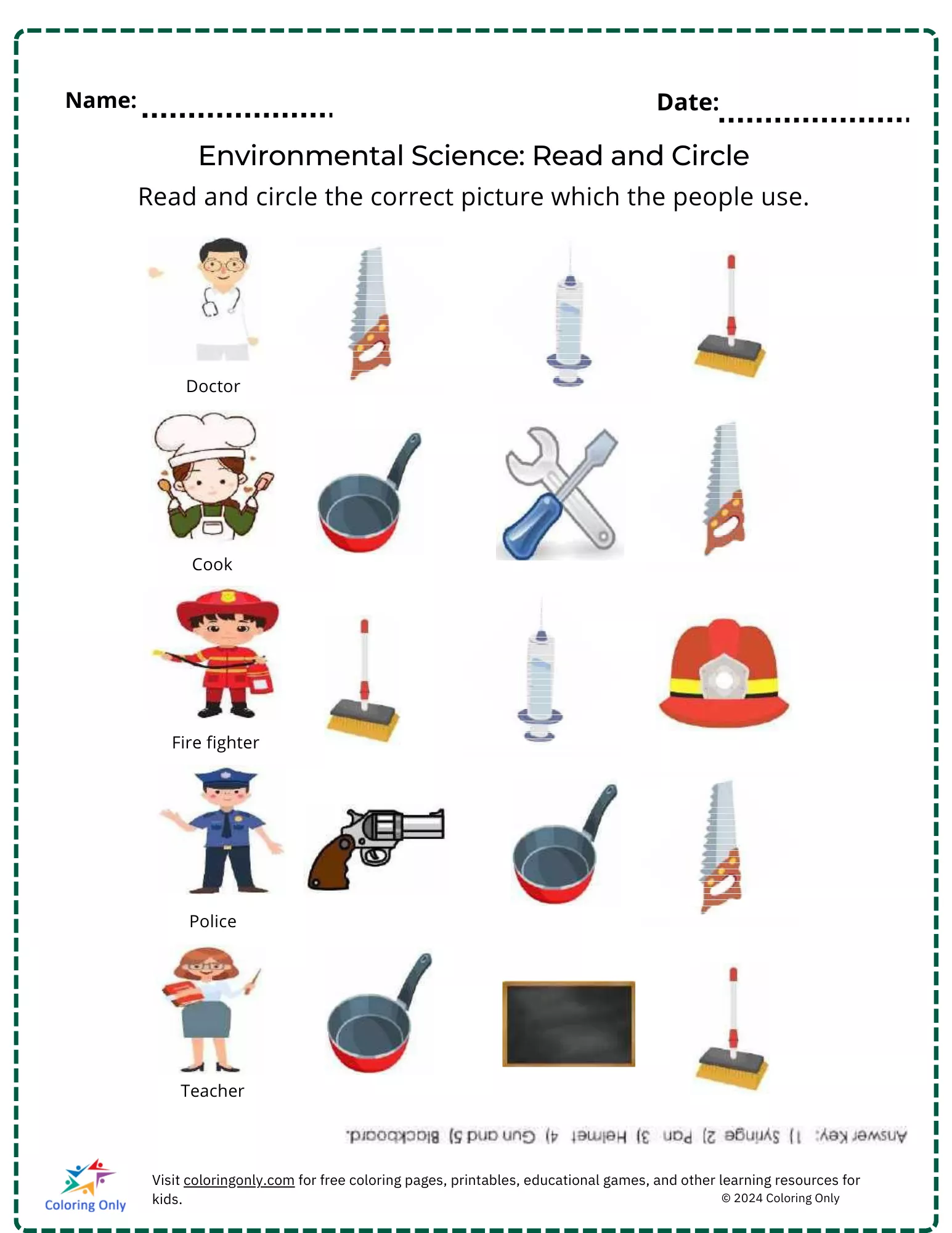 Beschreibung der Färbung : Druckbar herunterladen Environmental Science: Read and Circle free Printable Worksheet Malvorlage