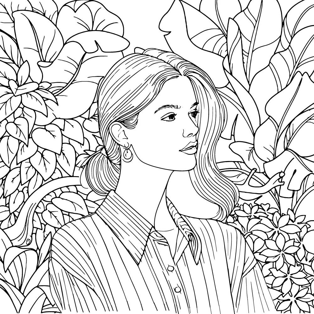 : Druckbar herunterladen Ästhetisches Mädchen draußen Malvorlage