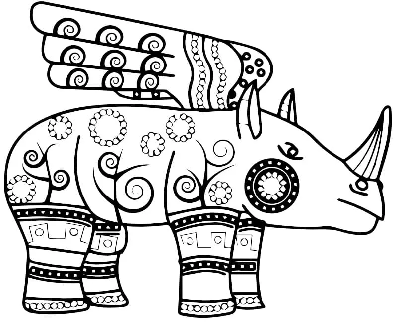 : Druckbar herunterladen Winged Rhinoceros Alebrijes Malvorlage