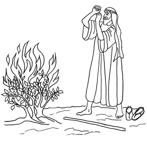 : Druckbar herunterladen Brennender Busch zum Ausdrucken Malvorlage