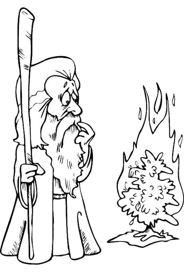 Beschreibung der Färbung : Druckbar herunterladen Drucken Moses und der brennende Dornbusch Malvorlage