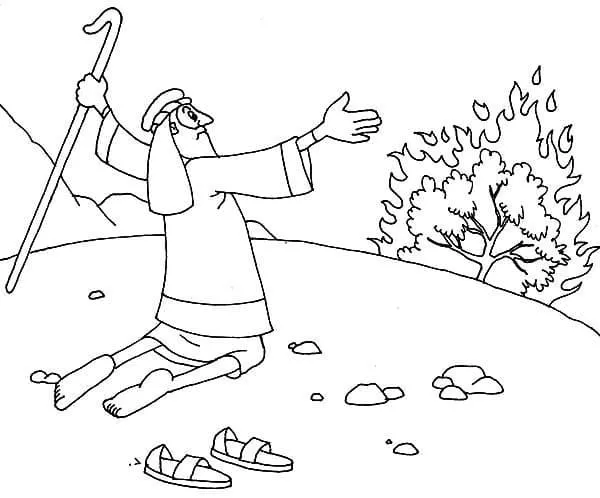 Beschreibung der Färbung : Druckbar herunterladen Drucken Moses und der brennende Dornbusch Malvorlage