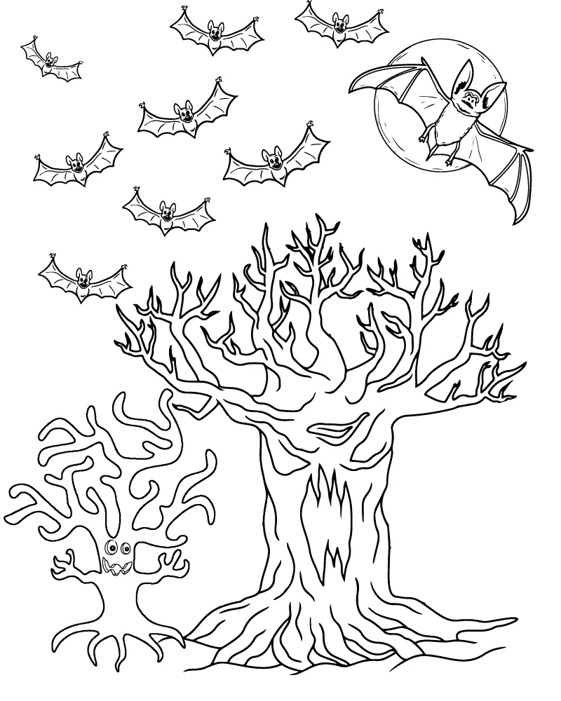: Druckbar herunterladen Gespenstischer Baum Malvorlage
