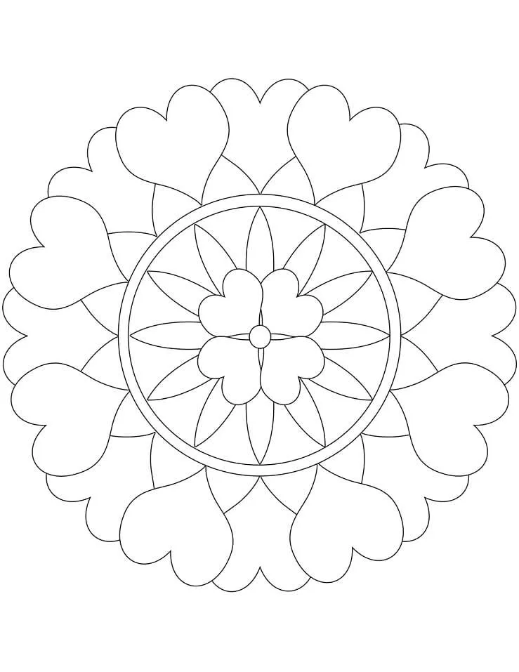: Druckbar herunterladen Herz-Mandala 4 Malvorlage