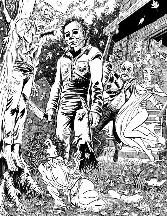 : Druckbar herunterladen Furchteinflößender Michael Myers Malvorlage