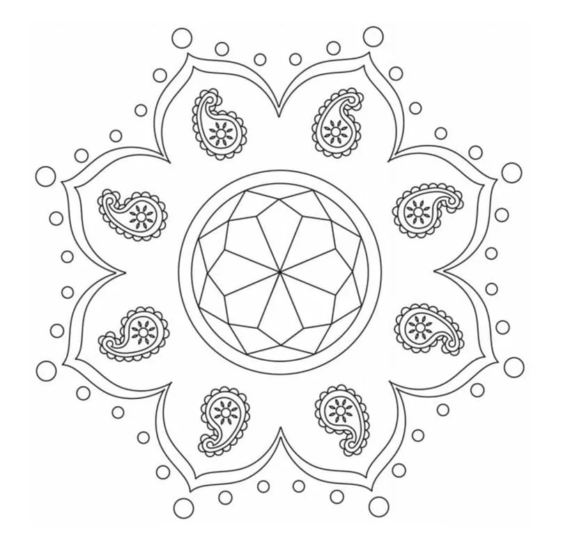: Druckbar herunterladen Kostenlos ausdruckbare Rangoli Malvorlage