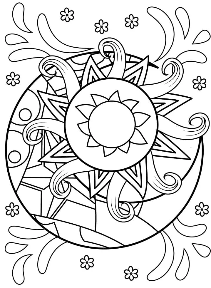 : Druckbar herunterladen Sun And Moon for Adult Malvorlage