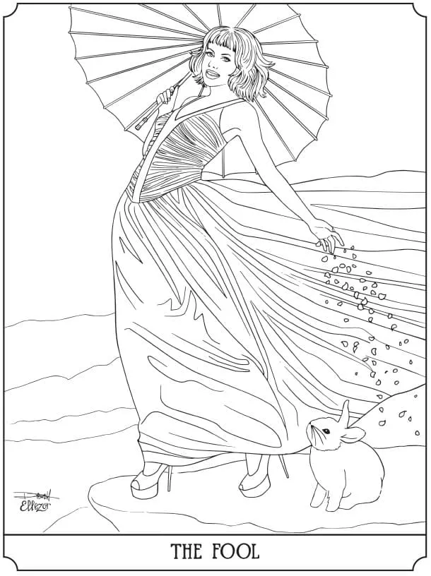 : Druckbar herunterladen The Fool Tarot Card Malvorlage