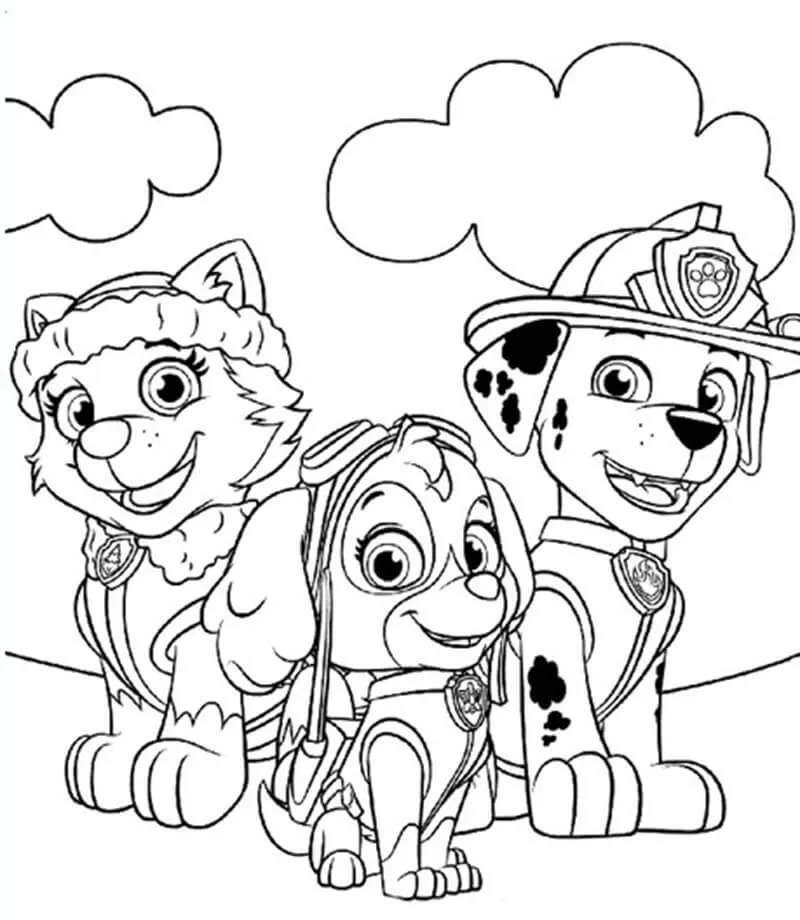 Beschreibung der Färbung : Druckbar herunterladen Everest, Skye and Marshall in Paw Patrol Malvorlage