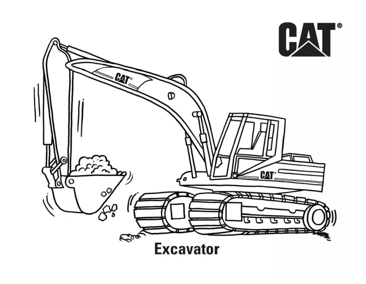 : Druckbar herunterladen CAT Mittlerer Bagger Malvorlage