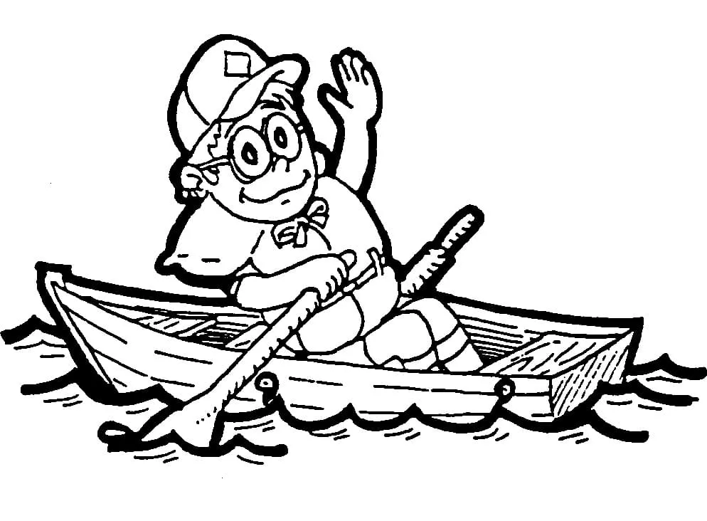 : Druckbar herunterladen Ein Junge auf dem Boot Malvorlage