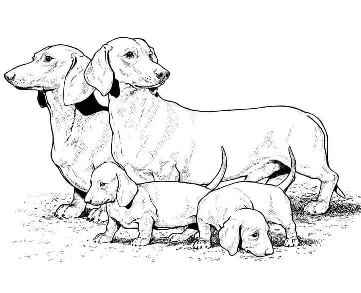 : Druckbar herunterladen Family Dachshund Malvorlage