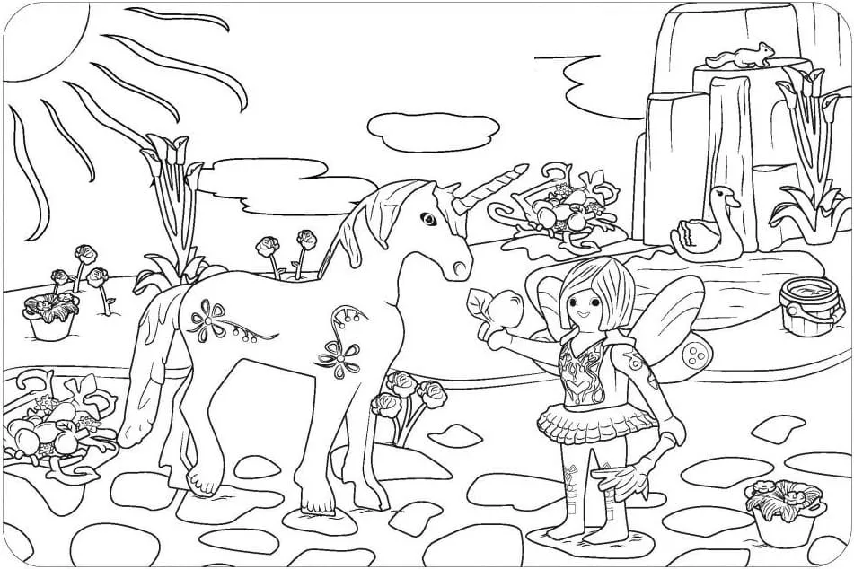 : Druckbar herunterladen Fantasy Playmobil Malvorlage