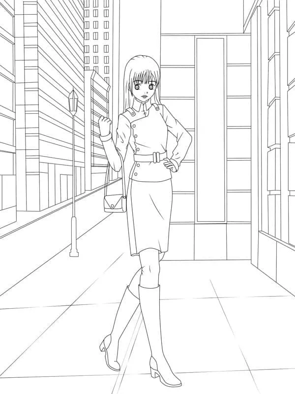: Druckbar herunterladen Fashionable Anime Girl Malvorlage