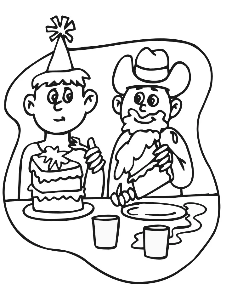 : Druckbar herunterladen 2 Jungs mit Geburtstagstorte Malvorlage